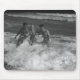Two young men and woman playing in wave B&W Mouse Mat