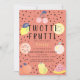 This cute "tutti frutti or two-tti frutti" 2nd birthday invitation features a salmon / orange / coral pink background with cherries, lemons, oranges, apples, watermelons, and pears in pastel colours. The reverse side features a light mustard yellow background with fruit patterns. Change the background colour and personalise for your needs. You can find more matching products at my store.