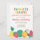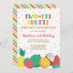 A fun, colourful fruit-themed birthday party invitation for your little girl's second birthday party. Features colourful fruits and confetti and the phrase 'Two-tti Frutti'.