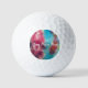 A 3 Pack, of Value Golf Balls, With a Picture of a Tye Dye Design, = (Tye Dye#2) = (Art by P.J.M.) Colours= Pink, Turquoise, Yellow, Dark Purple