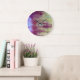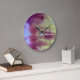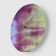 Acrylic Wall Clock, Round (Large), with a Picture of a Tye Dye Design= (Tye Dye #6) = (Art By P.J.M.), Colors=Maroon, Pink Yellow, White