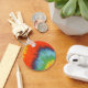 This keychain has an image of a tye dyed fabric. Very colourful! red, blue, green, yellow.