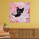 Tye Pink Floral - Black kitten playing in pink flowers, photography by Kelly Richardson.