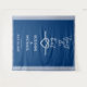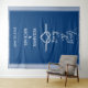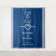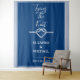 Modern nautical wedding tapestry decor featuring a whimsically romantic white heart knot displayed inside a navy blue border with rope accents and stripes. White typography. Classic navy blue and white colour scheme. Makes a great photo backdrop!