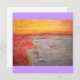 shows fly fisherman tying a fly on and colourful sunset from original painting !