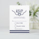 RSVP card with a charming calligraphy font in navy blue on a white background.
