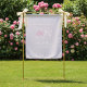 I was Pleasantly surprised when I open the small package in the mail. The banner is basically the texture and size of a large, light weight, thin king sized sheet. I ironed it before hanging it. I used it for my daughter’s bridal shower and it was a huge hit because I used it as a backdrop for a photo booth with a selfie ring. I would highly recommend it. The only complaint I had was that there was no way to hang it. I had to install grommets in order to hang it. The image quality was great!