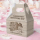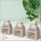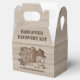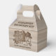 These cute favour boxes are perfect for your bachelor party. They feature a rustic western design with a weathered barnwood background and vintage woodcut word art reading "He's Tying the Knot!" There is a cowboy boot, cowboy hat, and a lasso rope forming a heart shape. The title reads, "Hangover Recovery Kit" and there is space for his name and the date of the event below. Perfect gift for your groomsmen!