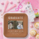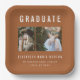 Modern, graphic terracotta and white, multi photo graduation party decor paper plate. Part of a collection.