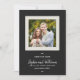 Stylish Photo Save the Date Card featuring your photo surrounded by a border, below which are the words "Save the Date" in a typewriter like font and the couple's names in script in an off-white colour all against a dark grey background. Card backside features overlapping dark grey lines against an off-white background.
