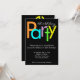 Cute birthday invitation, customise with any age. Fun and cheerful block style lettering in bright orange, blue, purple, green and yellow on black background. Sleek contemporary design is perfect for a man or woman's party invitations. Example shows 25th Birthday party, but use any age! Customise online with your event details.