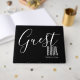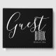 A beautiful flowing white font says "guest book" and has a template below it for the date of your important function or event. The colour of the background may be changed from black to any of your choice.