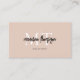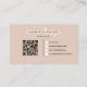 This business card features a modern Beige background with a clean and elegant design. The front highlights a white serif monogram intersected by a vertical line, overlaid with a black handwritten script name and a minimalist tagline below. The back includes a QR code on the left and vertically arranged contact details with sleek icons on the right, creating a balanced and professional layout. The combination of soft colours, stylish fonts, and organised elements exudes sophistication and modernity.