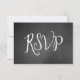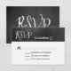 Trendy Typography chalkboard look wedding RSVP response card done to look like a vintage black board, across the top and covering the back. White graphic text reads RSVP. Personalise all the custom text fields to suit your wedding needs. Great for rustic, country chic, shabby weddings.