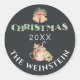 Typography Christmas Party Favour Classic Round Sticker for a fun festive holiday