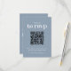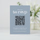 Modern minimal design with QR code and trendy typography on Dusty Blue background. The text can easily be personalised for a unique one of a kind design for your special day.