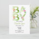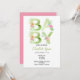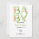 Typography Green Text Pink Flowers Baby Shower Invitation