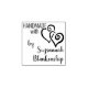 The simple design features san serif and calligraphy font with two solid curly hearts for your "handmade with love" product identification. Click the link to add your details or click customize to select a font style, size, and color you like that works.