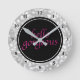 Typography Hello Gorgeous | Silver Bokeh Hot Pink Round Clock