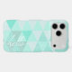 Typography Hello Mint Linen Abstract Modern Triangle Pattern iPhone Case