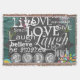 Typography text woven throw with a charcoal and teal blue background and white text that reads Live, Love, Encourage, Give, Smalle, Laugh, Believe, Be Amazed, Touch, and Kiss! Inspirational throw, perhaps motivational, makes a great gift for anyone you love, also for yourself!