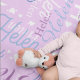 Add your own name to create a uniform pattern printed across the lilac background of the fabric. Your name repeated in different purple, blue and white font styles, mixed with small, delicate hearts sprinkled between the names. A great gift idea for babies and girls