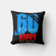 Typographic design with large blue number + name in blue + humourous lettering for Happy in red + birthday in yellow. Design on square pillow with text for 60th birthday to customise. You can easily change text(font, colour, size and position) by clicking the customise button. Matching greeting card. Perfect for him.