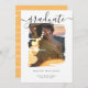 Design your own unique custom Personalised Graduation announcement flat card from Ricaso - designed with a scroll typography graduate text with a modern yellow and white scratched scribbled line pattern to the back - CHANGE THE SAMPLE PHOTO TO YOUR OWN