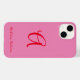 Trendy, fun modern, minimalist script typography Pink red feminine girly custom Iphone 14 case. The monogram name can easily be personalised. The perfectly personal back to school gift gift for teacher or accessory for any occasion!
