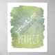 This typography poster has text practice makes perfect text in white and grey on soft moss green watercolor background wall art for home or office.