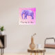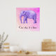 Inspirational typography quote - one step at a time. The background is a dreamy pink gradient watercolor background. The image is a purple watercolor elephant with nice watercolor blossoms giving it a unique and creative flair.