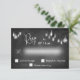 This elegant yet rustic wedding RSVP card features a textured chalkboard background graphic overlaid images depicting strings of grey-scale hanging vintage Edison light bulbs. I've used an elaborate, modern script font to render graphics depicting "Rsvp" and "M" on the front and "love" on the back. Your own text is easily added for customising this design as little or much as you wish. Use the template fields to simply enter your personal details, and click to customise further if you'd like to re-position any of the unlocked layers or further modify the design to your personal preferences. Please do not hesitate to reach out to me for special requests or for assistance with customisation.