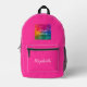 Custom Modern Elegant Cute Simple Trendy Template Upload Image Photo Picture Or Business Logo Add Typography Script Name Or Text Pink Solid Colour Accessories / Bags & Wallets / Backpack.