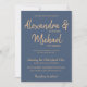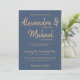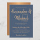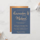 Elegant trendy typography wedding invitation in dark midnight blue with rose gold hand lettering featuring big bride's and groom's first names calligraphy script. On the back side, there is a faux metal copper foil. ---- Please note that the navy background colour on front side is editable. You can change it after selecting CUSTOMIZE further option. ------- The invitation is suitable for any season - spring, summer, autumn, winter - indoor wedding reception.