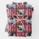 Create your own custom wrapping paper sheets assortment with up to 5 of your photos in square format and a typography chequerboard pattern design in a chic colour palette of burgundy red, berry red and pink. Sheet one has a template for up to two of your favourite photos bordered in a deep maroon set on a background of burgundy red and MERRY in a modern arrangement of pale pink text. Sheet two has a template for you to upload one photo, with alternating frames of burgundy red and berry red and JOY alternating between the same yummy red shades in between the check pattern of pictures on a pastel pink background. The final sheet of personalised photo gift wrap, sheet three, has a template for up to two of your treasured pictures bordered in a dark red set on background of vibrant berry red and MERRY again in a modern arrangement of pale pink text. Add your photos to this assortment of Christmas wrapping paper templates in chic shades of burgundy, berry red and pink for three sheets of holiday gift wrapping cheer.