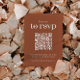 Modern minimal design with QR code and trendy typography on terracotta burnt orange background. The text can easily be personalised for a unique one of a kind design for your special day.