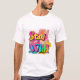 "Unleash your inner rebel with this vibrant typography t-shirt featuring the empowering phrase 'Stay wild' in playful, multi-colour letters. Perfect for anyone who loves fun and adventurous fashion. Typography tshirt fun for all!"