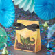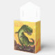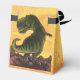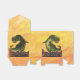 Animal Parade T-Rex Dinosaur Tent with Ribbon Favour Box brought to you by ITD Animal Parade features our original art of a cute Tyrannosaurus Rex from the front and the back standing in a prehistoric landscape complete with a smoking volcano, a textured yellow orange sky, and playful waving purple border. Painted by our talented children's illustrator, Traci Van Wagoner, this cute T-Rex dino is great for kids of all ages, and is sure to bring a smile to the faces of all dinosaur lovers on your gift list.