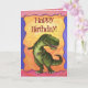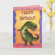 Animal Parade Tyrannosaurus Rex Birthday Party themed customisable and personalised gifts, decorations, party favours, and much more created by ITD Animal Parade feature our original art of a playful TRex dinosaur who stands in a brown prehistoric landscape complete with a smoking volcano. Behind the whimsical dinosaur is a textured yellow, orange sky and a playful wavy purple border. This cute dinosaur from the front and back on many products was painted by our talented children's illustrator, Traci Van Wagoner. Throw a prehistoric dinosaur party for your kid today with our coordinating TRex Dinosaur fun and whimsical gift and party ideas. Have a rip-roaring party! Rawr!