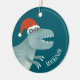 Tyrannosaurus Rex Christmas Santa Hat Personalised Ceramic Tree Decoration