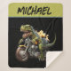 Tyrannosaurus Rex Dinosaur Riding a Motorcycle Sherpa Blanket