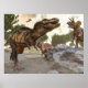 Tyrannosaurus rex escaping from three triceratops attack next to aristata pine by day - 3D render