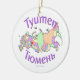 Customisable colourful map ornament of the Russian Federation with Tyumen city location marked with a flag. City name also in Russian - Тюмень. Unique Russia family or adoption or Christmas gift for families with children from Tyumen. Designed by Hendrika of www.RedThreadMaps.com