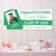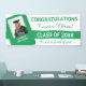 This bold text design has a template to input the name of your high school or college, class year, grad's name and image as well as a personal message. If your grad's school colours include green, just change the white background if necessary to match their second colour.