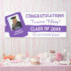 This bold text design has a template to input the name of your high school or college, class year, grad's name and image as well as a personal message. If your grad's school colours include purple, if necessary, just change the white background to match their second colour.