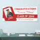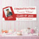 This bold text design has a template to input the name of your high school or college, class year, grad's name and image as well as a personal message. If your grad's school colours include red, just change the white background if necessary to match their second colour.