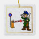 This ornament features my cartoon graphic of a U.S. Border Patrol Agent at the border gate with a pair of binoculars. On the back you can personalise this with a Name and Year. Or put whatever you want on the back. Makes a great gift for anyone you know who works as a Border Patrol Agent. Designed by Sheila Cicchi, Brownielocks.com. All Rights Reserved. NOTE: U.S. Border Patrol Day is on May 28 annually. Due to the design style, you can only buy this on SQUARE ornaments.