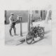 This is a vintage photograph of a US mailman with his motorcycle collecting mail from a postal box. The brand name on his motorcycle is The Flying Merkel.