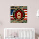 Introducing project “Military Insignia 3D”, featuring top quality military heraldry designs. Here you will find wrapped canvas and framed fine art prints decorated with rank insignia of a U.S. Marine First Sergeant (USMC 1stSgt). In the United States Marine Corps, First Sergeant (abbreviated 1stSgt) is one level above Gunnery Sergeant and one level below Sergeant Major and Master Gunnery Sergeant. It is equal in grade to Master Sergeant, although the two ranks have different responsibilities. A first sergeant has a command responsibility as a senior enlisted advisor, while master sergeants have technical responsibilities. Unlike the first sergeant and master sergeant programs in other branches, no lateral movement is possible between the two ranks in the Marine Corps; rather a gunnery sergeant elects a preference on fitness reports, which are considered before promotion. A first sergeant is then eligible to be promoted to a sergeant major, while a master sergeant would be on the promotional track for master gunnery sergeant. The grade of first sergeant initially appeared in the Marine Corps in 1833, when Congress created the grade of Orderly Sergeant; 30 billets for the rank were established. In 1872, the Corps replaced the title of orderly sergeant with the rank of first sergeant. The rank of first sergeant was another casualty of the rank realignment of 1947. It was reestablished in 1955.