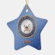 A quality product. Very nicely printed which wraps around the edge with a plain back. Not at all to heavy to fall off that tree branch. The printing seems crisp and robust enough to last for many a Christmas.